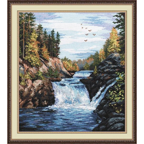Набор для вышивания нитками Овен, Водопад Кивач, 29х35 см