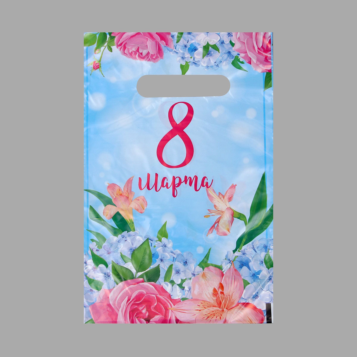 Пакет полиэтиленовый с вырубной ручкой 8 марта, 20х30 см, 30 мкм, 50 шт, 7394198