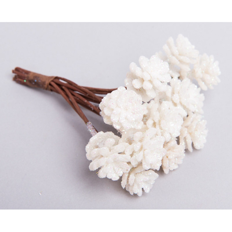 Шишки на проволоке с глиттером 2х2х10см, белый, 12 шт, 95215