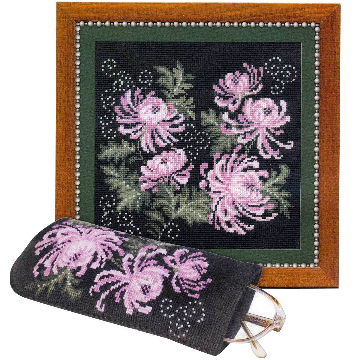 Набор для вышивания крестом Риолис, Панно/очечник с хризантемами, 18*18 см арт. 966