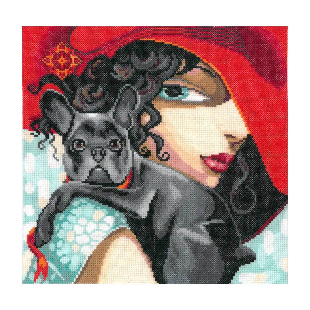 Набор для вышивания крестом Нитекс, Дама с собачкой 26х26 см арт. А-0053