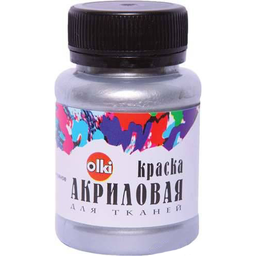 Краска акриловая для ткани Olki Металлик, 100 мл, серебро жемчужное