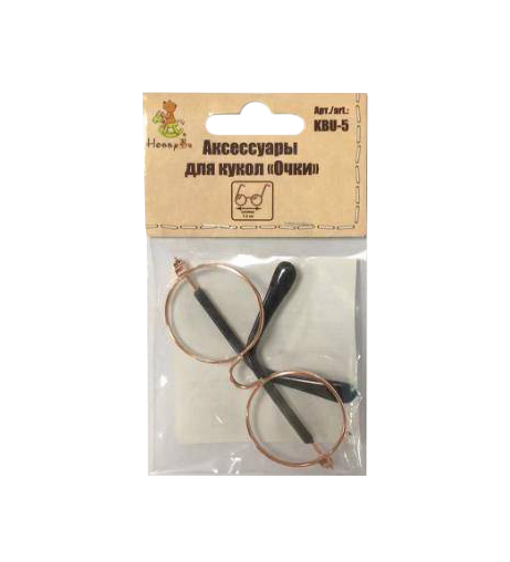 Оправа пластиковая, окрас имитирует металл. Стильные круглые линзы выполнены из пластика прозрачного цвета. Дужки выполнены из гладкого черного пластика, препятствующего скольжению на кукле. У очков подвижные дужки, их можно надеть на куколок с разной шириной личика.