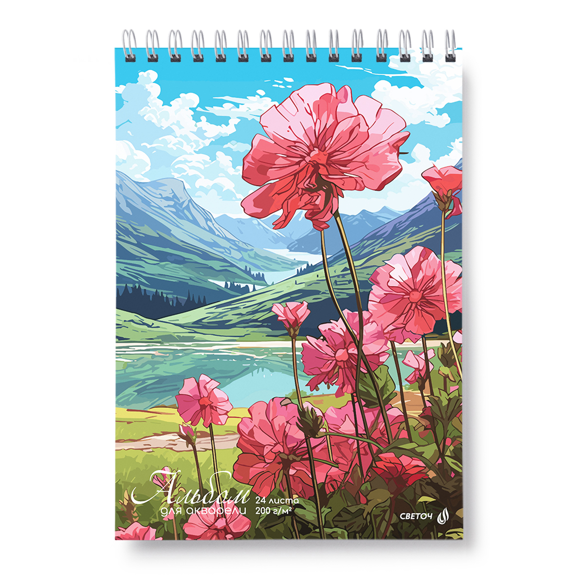 Альбом для акварели 200 г/м², A4 29.5х21 см, 2 шт на гребне 24 л, 01600 Маки в цвету, Светоч А228