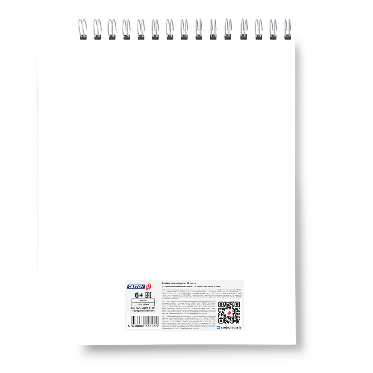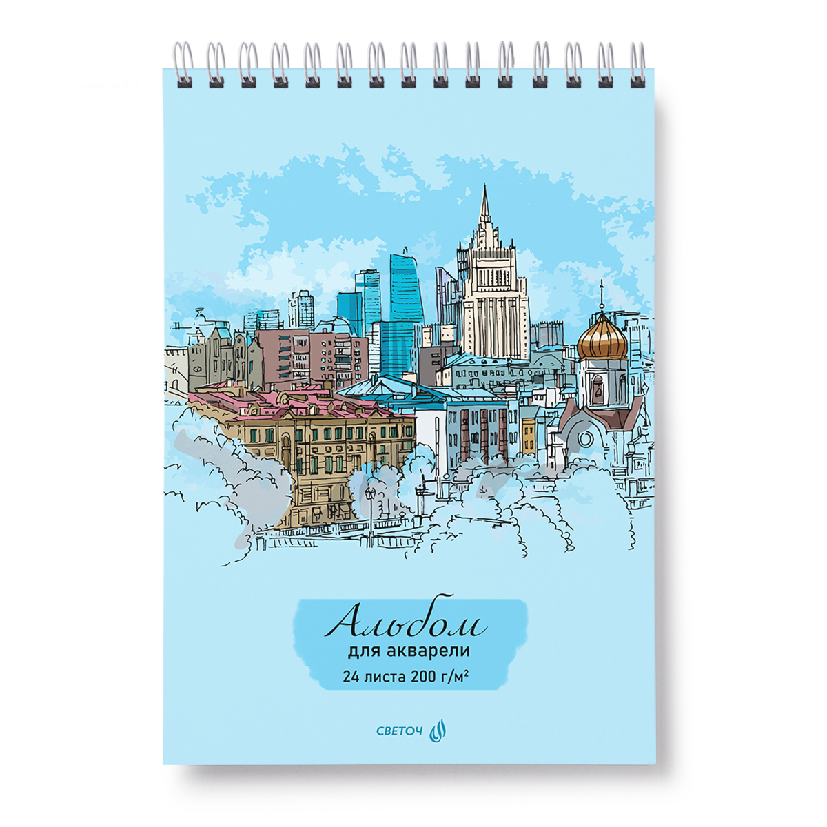 Вид скрепления гребень сверху - позволяет переворачивать листы на 180 градусов. Альбом можно использовать на пленэре: твердая подложка служит планшетом.