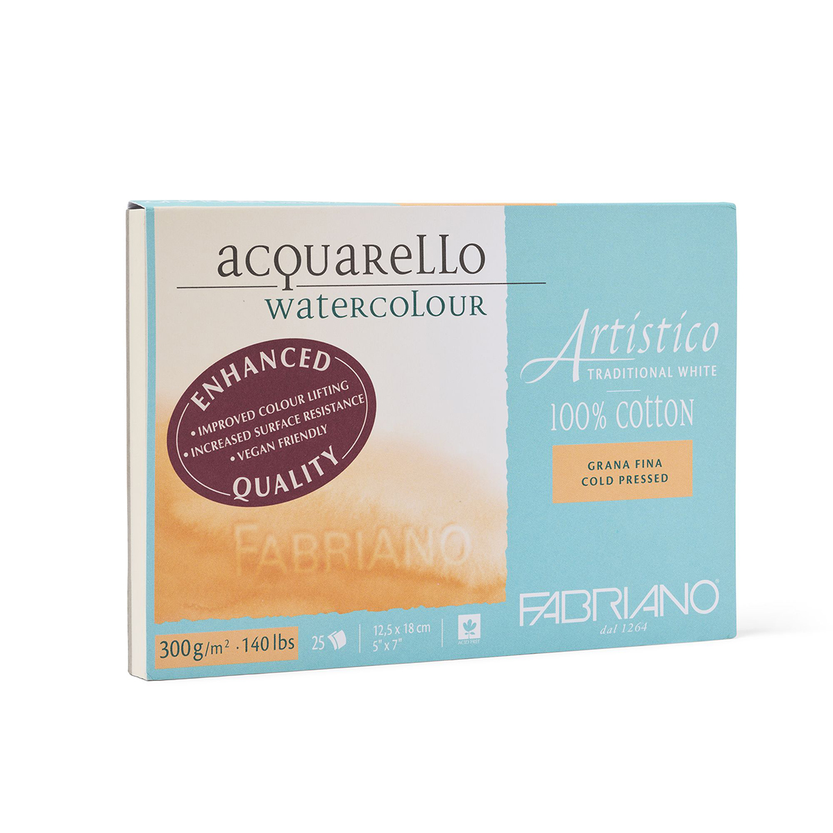 Artistico Traditional White - белая бумага с теплым оттенком производится на мульдовых станках, что придаёт ей уникальные характеристики, свойственные бумаге ручной работы. Бумага произведена из длинных, эластичных и прочных волокон хлопка, придающих бумаге мягкую текстуру. Поверхность устойчива к многократной размывке, растушевке и стиранию. Новая формула пропитки бумаги обеспечивает идеальную цветопередачу, пигменты красок не проникают вглубь структуры листа. Также бумага не содержит кислот, лигнина. Содержание хлопка - 100%. Проклейка по всем 4-м сторонам. Максимально удобный для работы и транспортировки формат акварельной художественной основы.