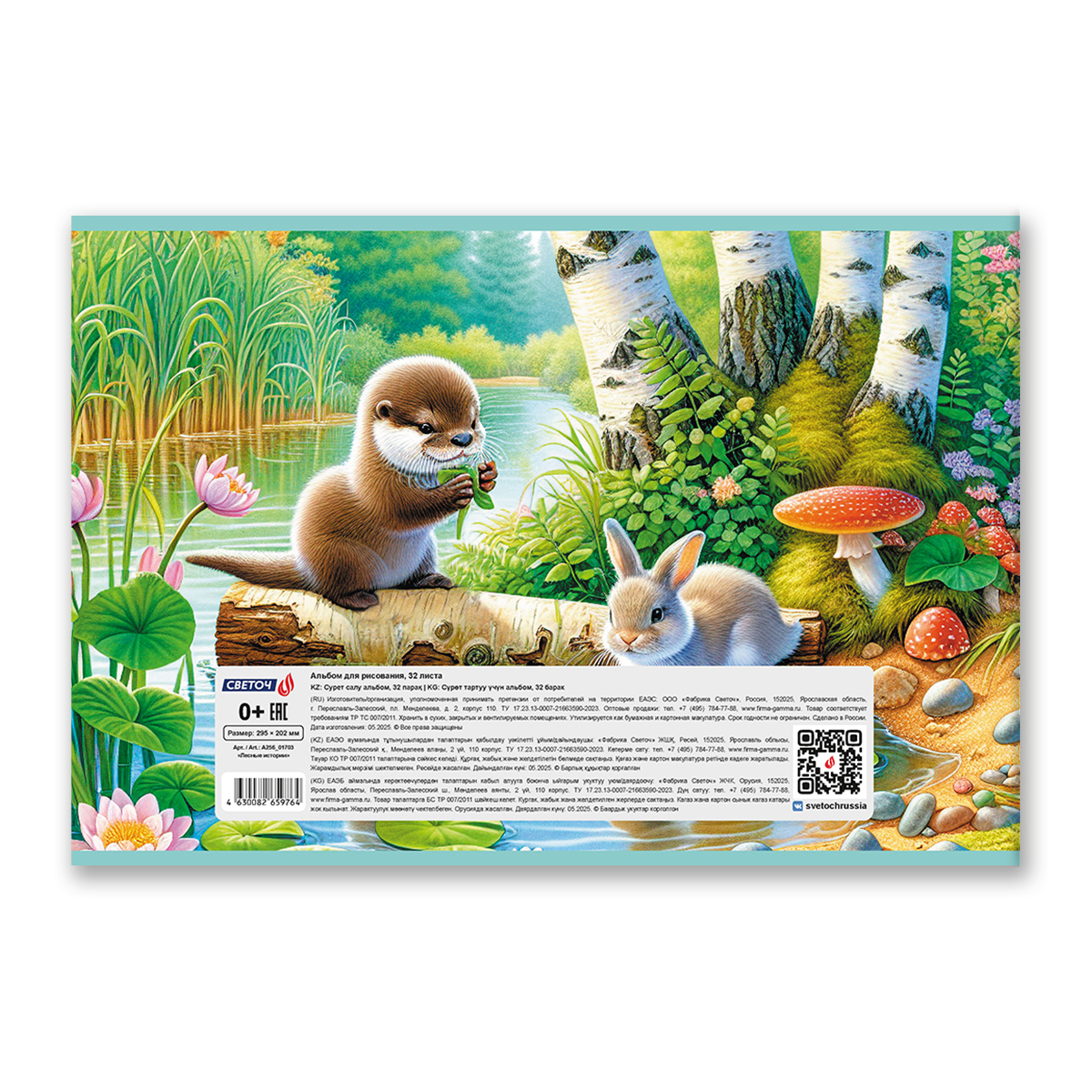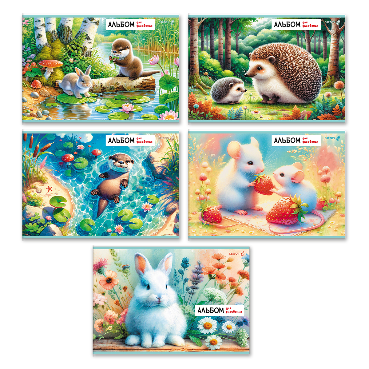 Альбом для рисования 100 г/м², A4 29.5х20.2 см, 32 л. на скобе 5 шт, 01703 Лесные истории, Светоч А256