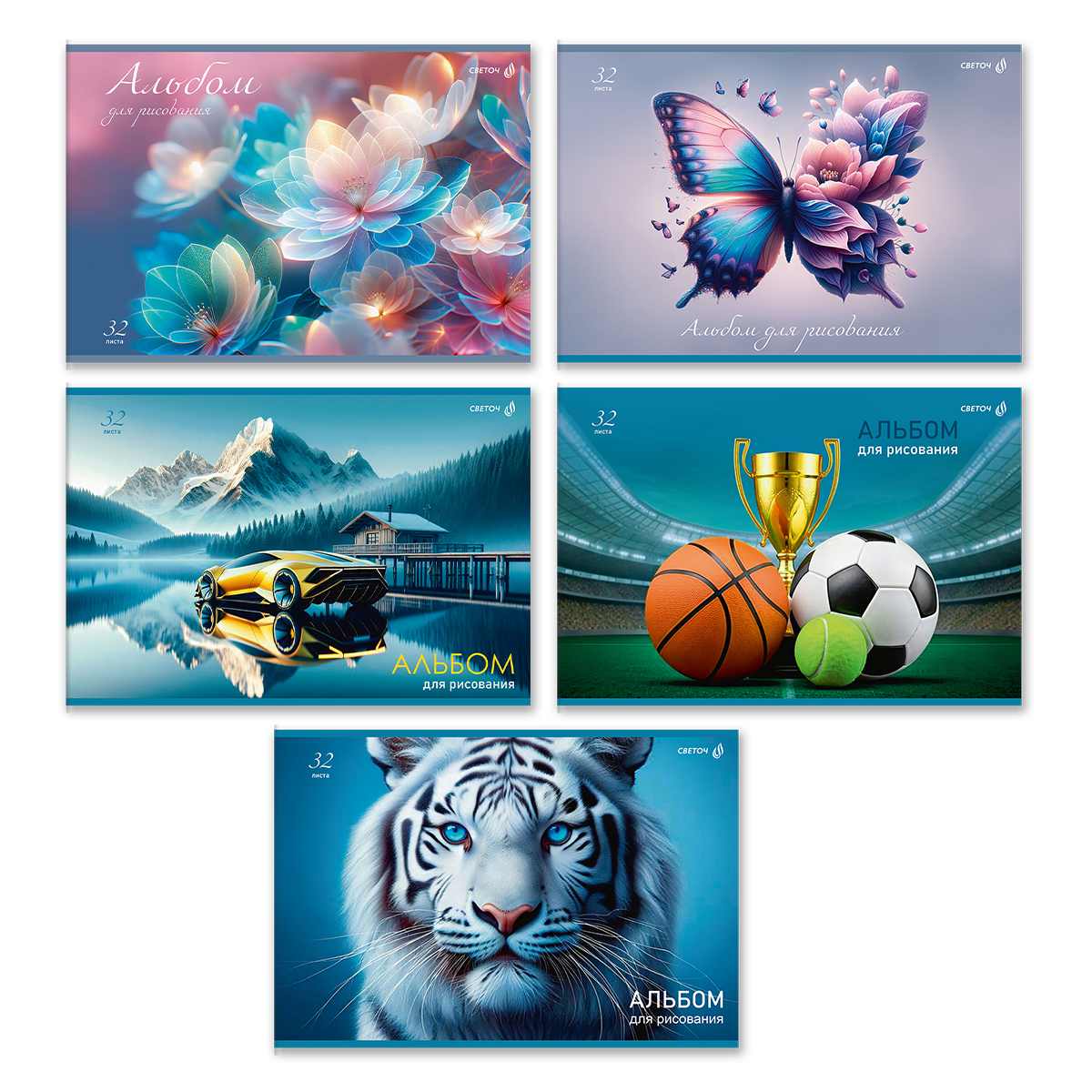 Альбом для рисования 100 г/м², A4 29.5х20.2 см, 32 л. на скобе 5 шт, 01706 МИКС Прекрасный мир, Светоч А256