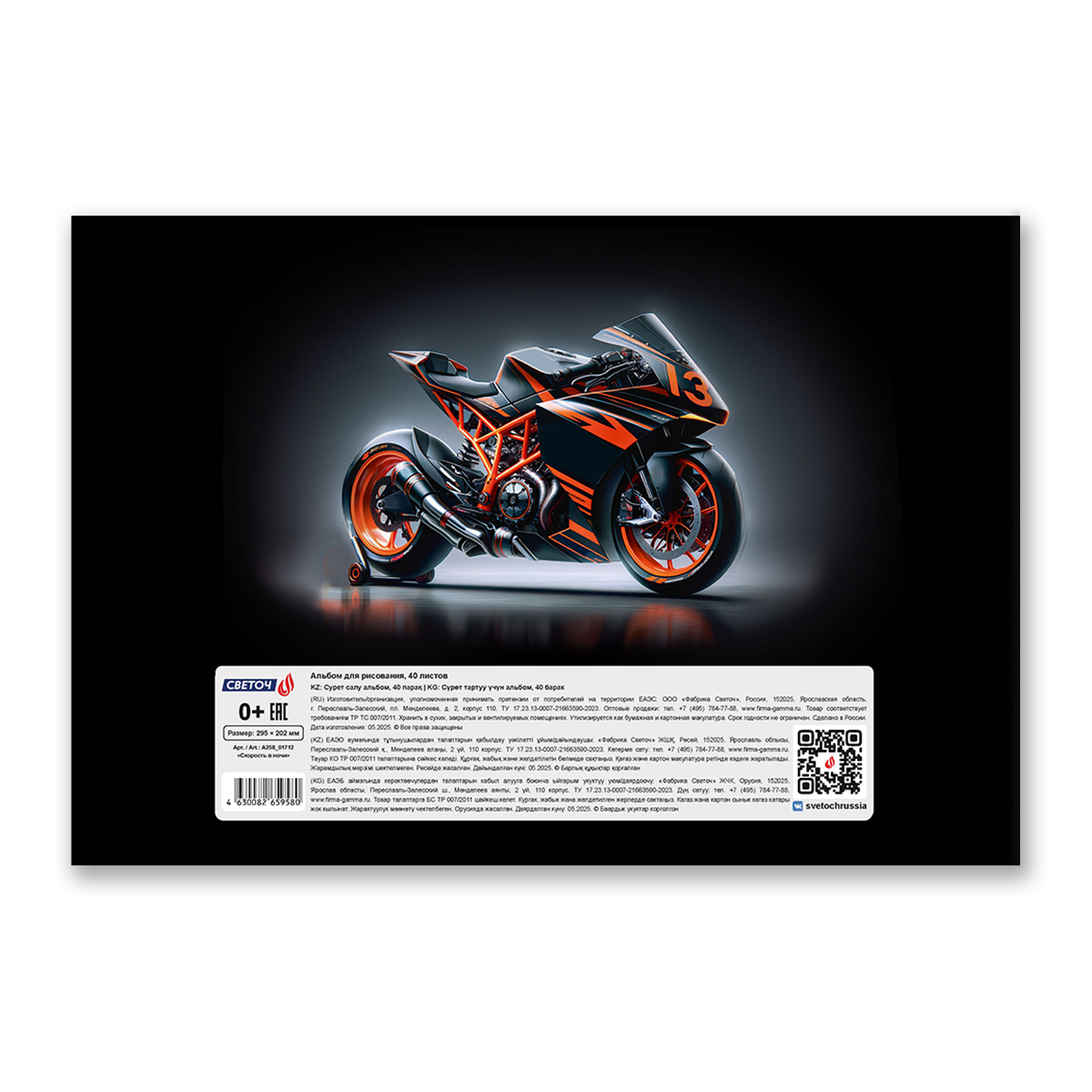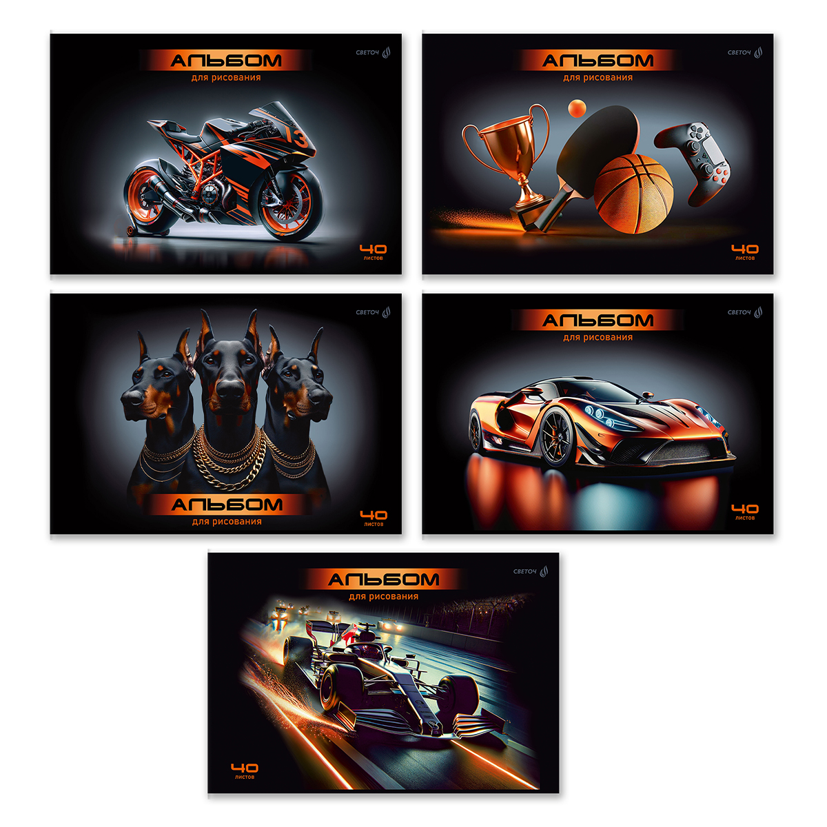 Альбом для рисования 100 г/м², A4 29.5х20.2 см, 40 л. на скобе 5 шт, 01712 Скорость в ночи, Светоч А258