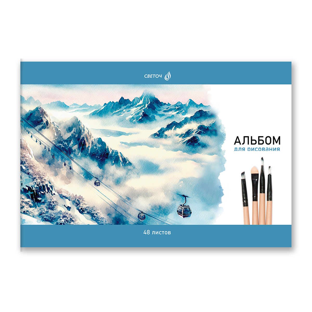 Вид скрепления - скоба. Обложка из мелованного картона плотностью 190 г/кв. м.