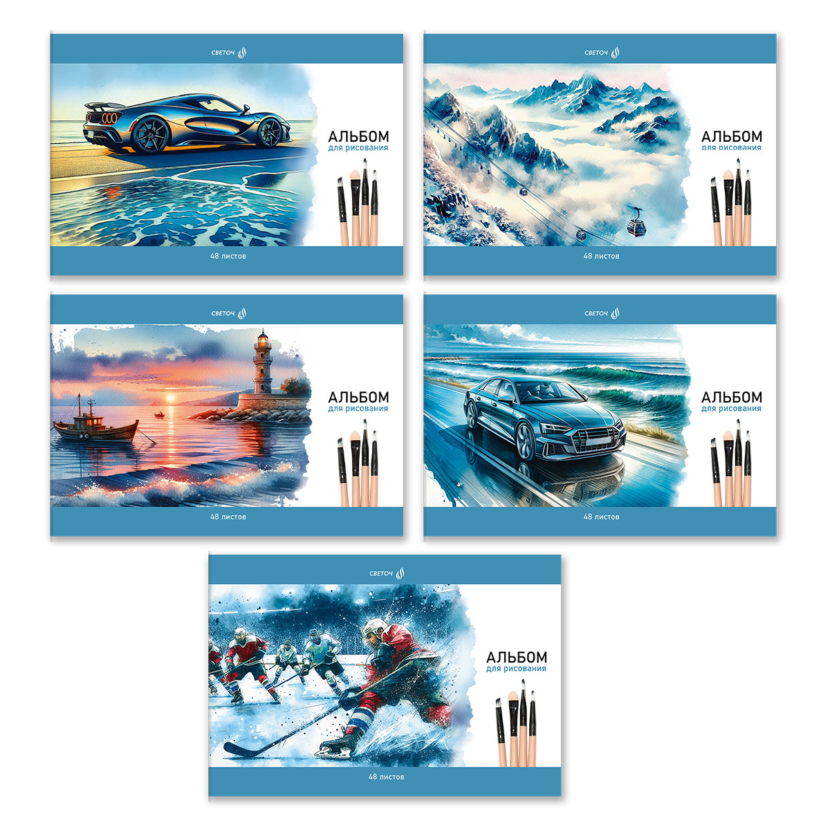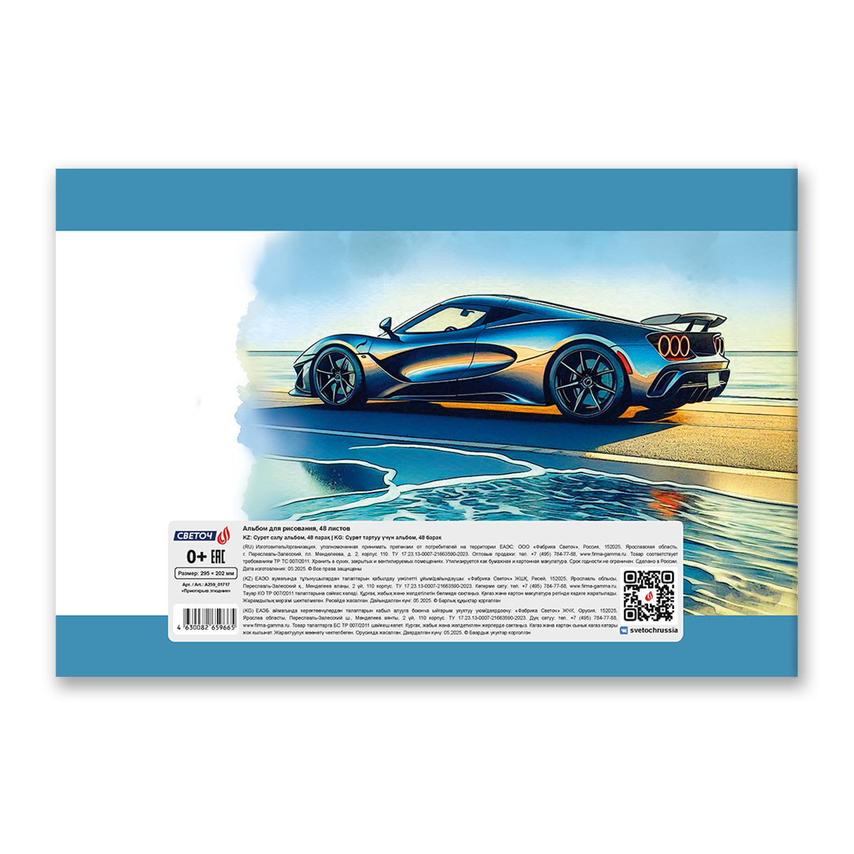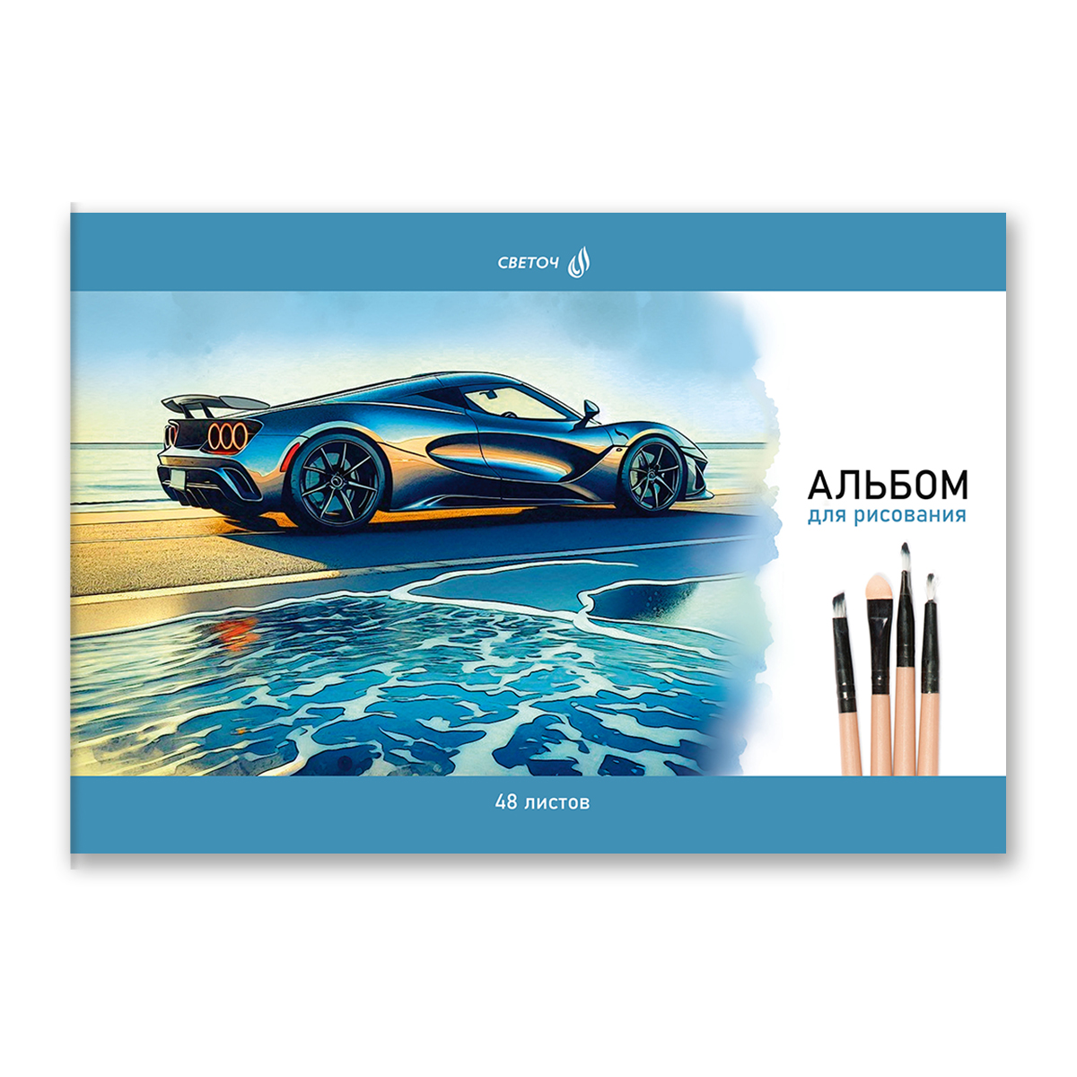Внутренний блок: 48 листов, бумага плотностью 100 г/кв. м, без линовки, 100% белизны.