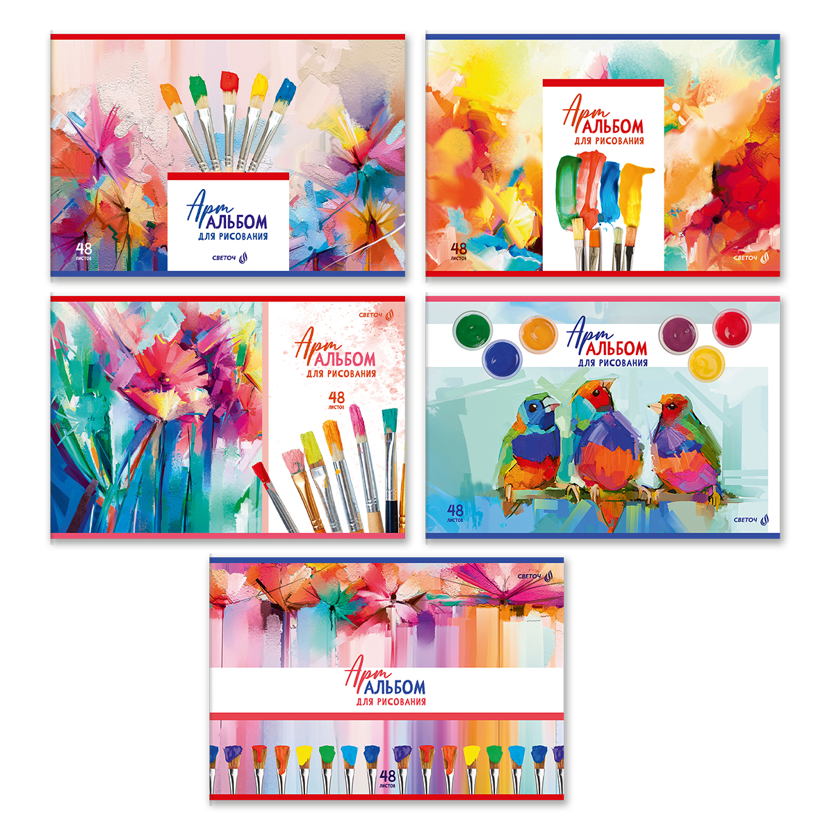 Альбом для рисования 100 г/м², A4 29.5х20.2 см, 48 л. на скобе 5 шт, 01722 АРТ букет, Светоч А259