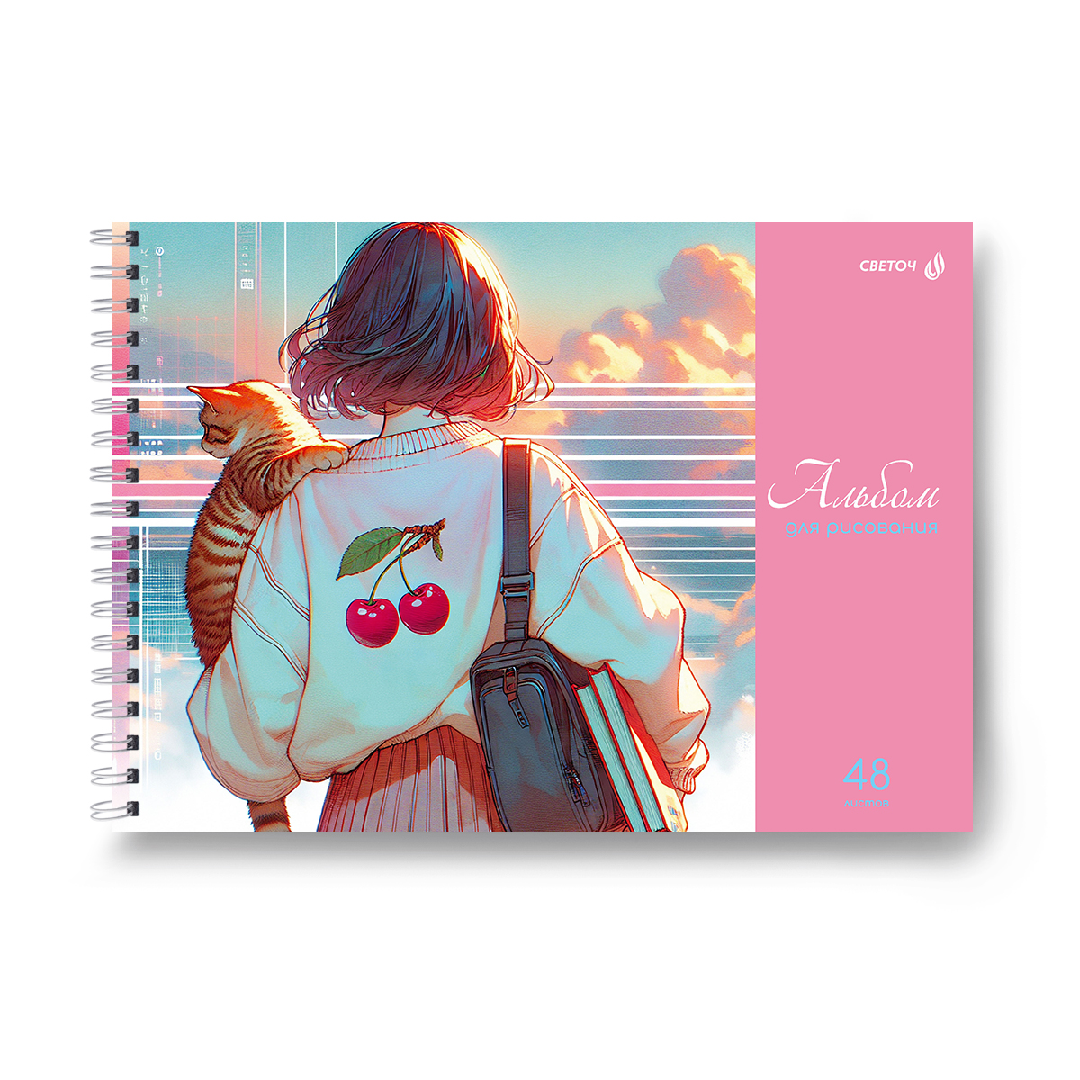 Формат А4. Вид скрепления - гребень. Обложка из мелованного картона плотностью 190 г/кв. м. Альбомы упакованы в термоусадочную пленку по 5 штук - 1 альбом каждого дизайна.