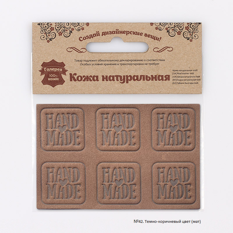 Аппликации из кожи пришивные Hand Made 3*3см (6 шт), 100% кожа (42 темно-коричневый) 7050