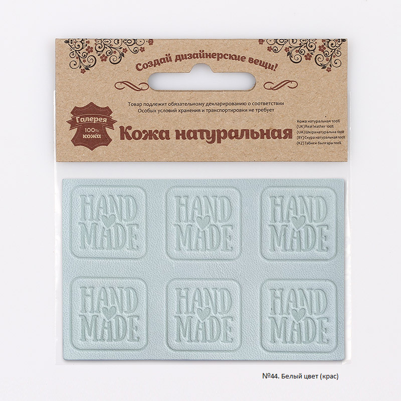 Аппликации из кожи пришивные Hand Made 3*3см (6 шт), 100% кожа (44 белый) 7050