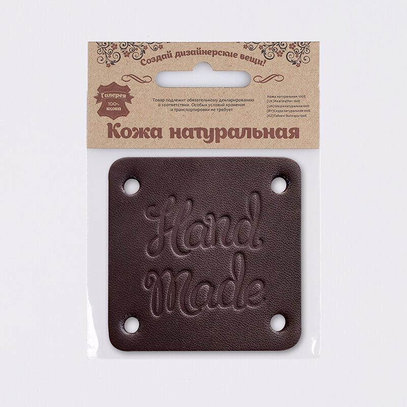 Аппликации с надписью изготовлены из 100% натуральной толстой кожи. Надпись Hand Made (ручная работа) – знак того, что ваша вещь индивидуальна, имеет свою историю и сохранила частицу вашей души. Благодаря лаконичному дизайну элемент сочетается с вещами различных стилей, при этом не обращает на себя излишнего внимания. Добавьте аппликацию к вашим вещам, это могут быть: – связанный вручную свитер или шарф; – сшитая своими руками кукла, мягкая игрушка; – и многое другое. На деталь уже нанесена перфорация – проколочное шило не понадобится. Чтобы пришить заплатку к изделию, используйте синтетические нитки повышенной прочности, шнурок, ленту. При желании зафиксируйте элементы с помощью специального клея. Размер: 4,6х4,6 см.