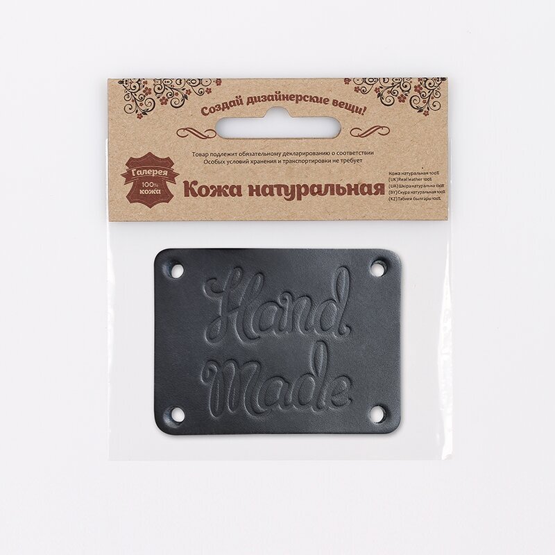 Аппликации с надписью изготовлены из 100% натуральной толстой кожи. Надпись Hand Made (ручная работа) – знак того, что ваша вещь индивидуальна, имеет свою историю и сохранила частицу вашей души. Благодаря лаконичному дизайну элемент сочетается с вещами различных стилей, при этом не обращает на себя излишнего внимания. Добавьте аппликацию к вашим вещам, это могут быть: – связанный вручную свитер или шарф; – сшитая своими руками кукла, мягкая игрушка; – и многое другое. На деталь уже нанесена перфорация – проколочное шило не понадобится. Чтобы пришить заплатку к изделию, используйте синтетические нитки повышенной прочности, шнурок, ленту. При желании зафиксируйте элементы с помощью специального клея. Размер: 7х5,2 см.