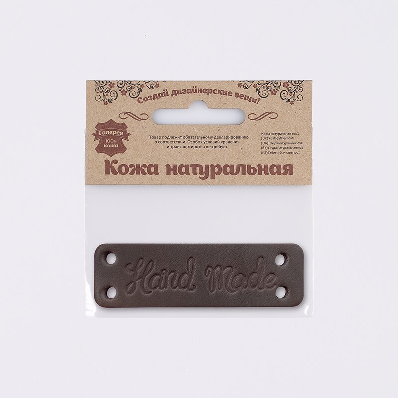 Аппликации с надписью изготовлены из 100% натуральной толстой кожи. Надпись Hand Made (ручная работа) – знак того, что ваша вещь индивидуальна, имеет свою историю и сохранила частицу вашей души. Благодаря лаконичному дизайну элемент сочетается с вещами различных стилей, при этом не обращает на себя излишнего внимания. Добавьте аппликацию к вашим вещам, это могут быть: – связанный вручную свитер или шарф; – сшитая своими руками кукла, мягкая игрушка; – и многое другое. На деталь уже нанесена перфорация – проколочное шило не понадобится. Чтобы пришить заплатку к изделию, используйте синтетические нитки повышенной прочности, шнурок, ленту. При желании зафиксируйте элементы с помощью специального клея. Размер: 8х2,5 см.