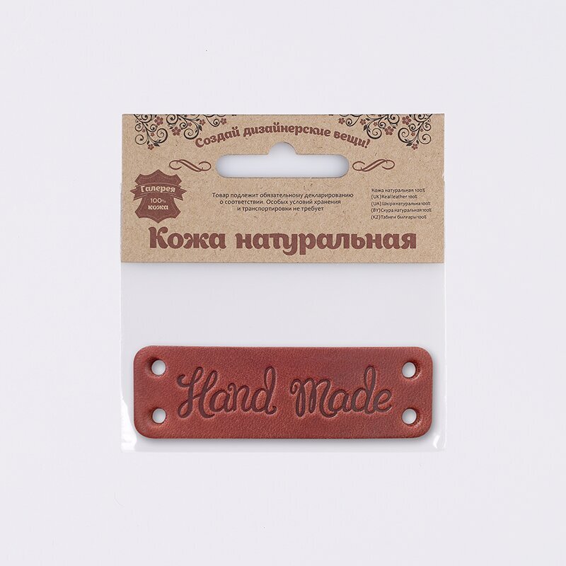 Аппликации с надписью изготовлены из 100% натуральной толстой кожи. Надпись Hand Made (ручная работа) – знак того, что ваша вещь индивидуальна, имеет свою историю и сохранила частицу вашей души. Благодаря лаконичному дизайну элемент сочетается с вещами различных стилей, при этом не обращает на себя излишнего внимания. Добавьте аппликацию к вашим вещам, это могут быть: – связанный вручную свитер или шарф; – сшитая своими руками кукла, мягкая игрушка; – и многое другое. На деталь уже нанесена перфорация – проколочное шило не понадобится. Чтобы пришить заплатку к изделию, используйте синтетические нитки повышенной прочности, шнурок, ленту. При желании зафиксируйте элементы с помощью специального клея. Размер: 8х2,5 см.
