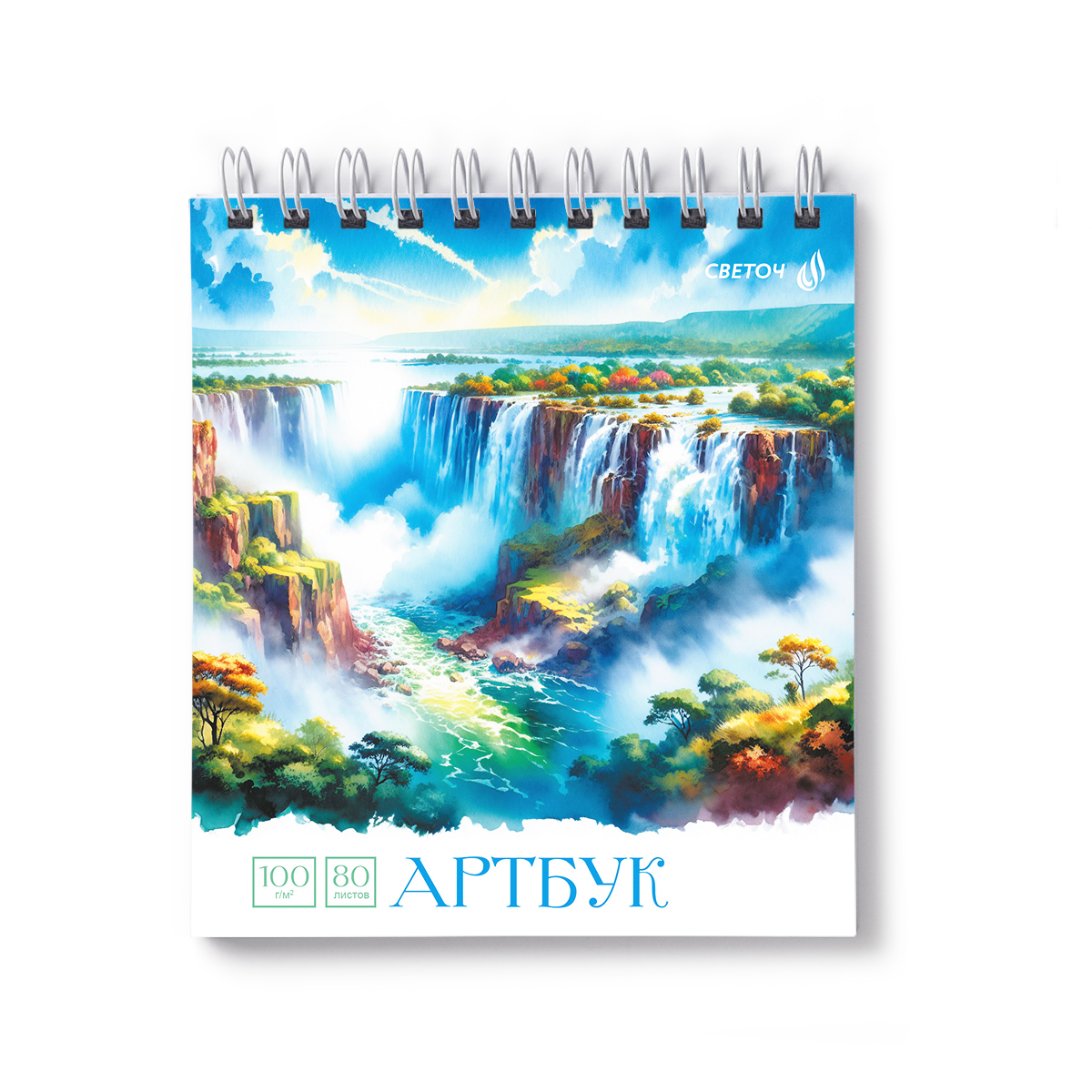Артбук (Скетчбук), блок белый, жесткая подложка, 100 г/м², 166х175 мм, на гребне 80 л. 2 шт, Шум водопада 01613, Светоч А231