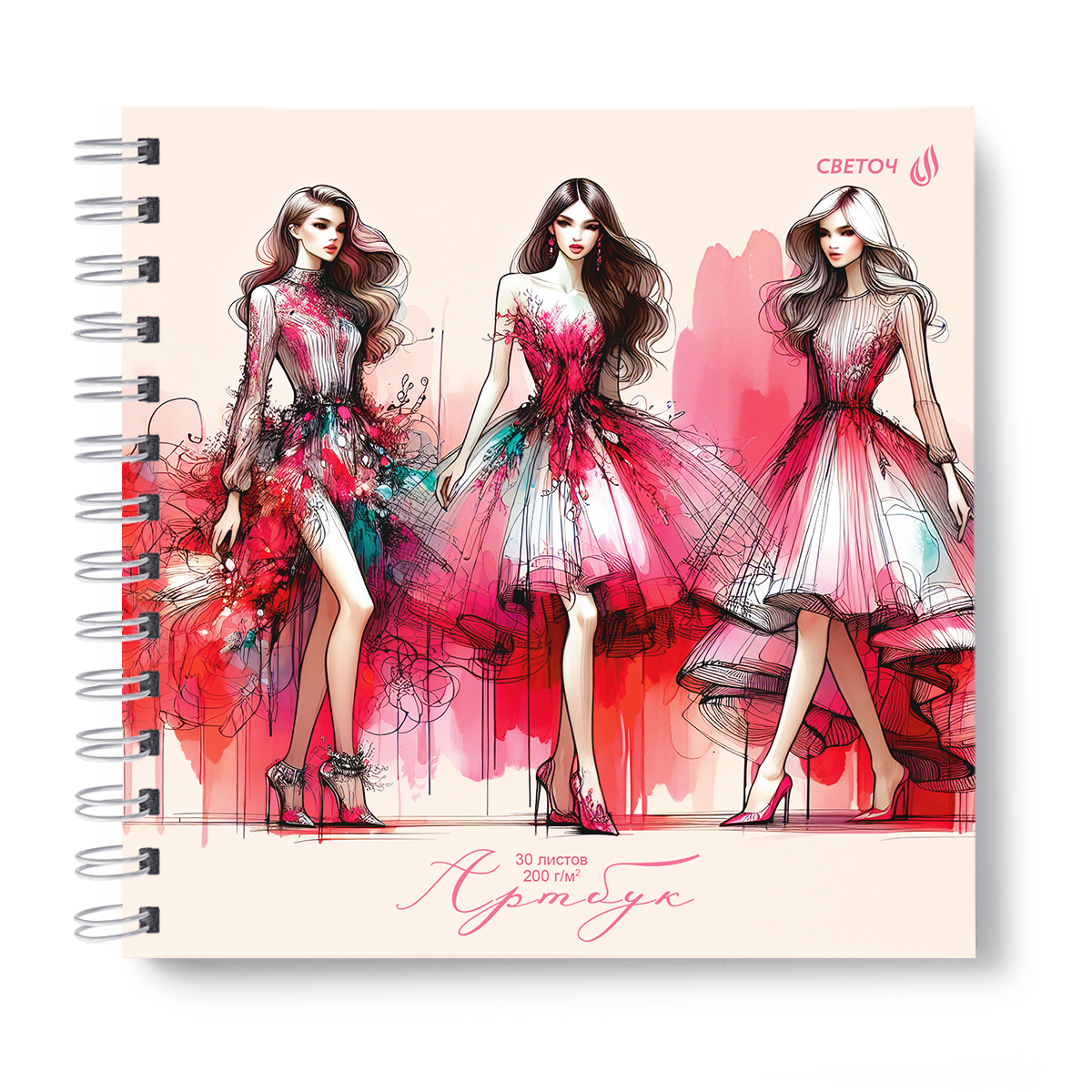 Артбук (Скетчбук), блок белый, жесткая подложка, 200 г/м², 205х205 мм, на гребне 30 л. 2 шт, Мода и стиль 01608, Светоч А230