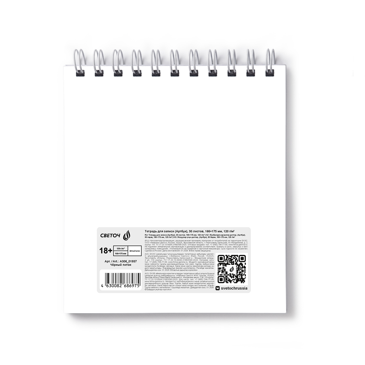 Вид скрепления - гребень, позволяет легко переворачивать страницы на 360 градусов.