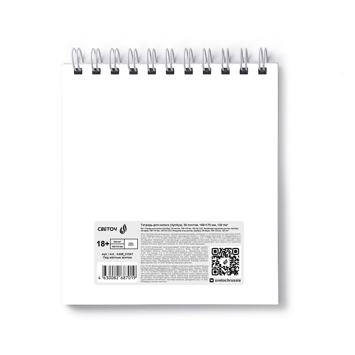 Артбук (Скетчбук), блок крафт - бумага, жесткая подложка, 120 г/м², 166х175 мм, на гребне 30 л. 2 шт, Под жёлтым зонтом 01947, Светоч А308