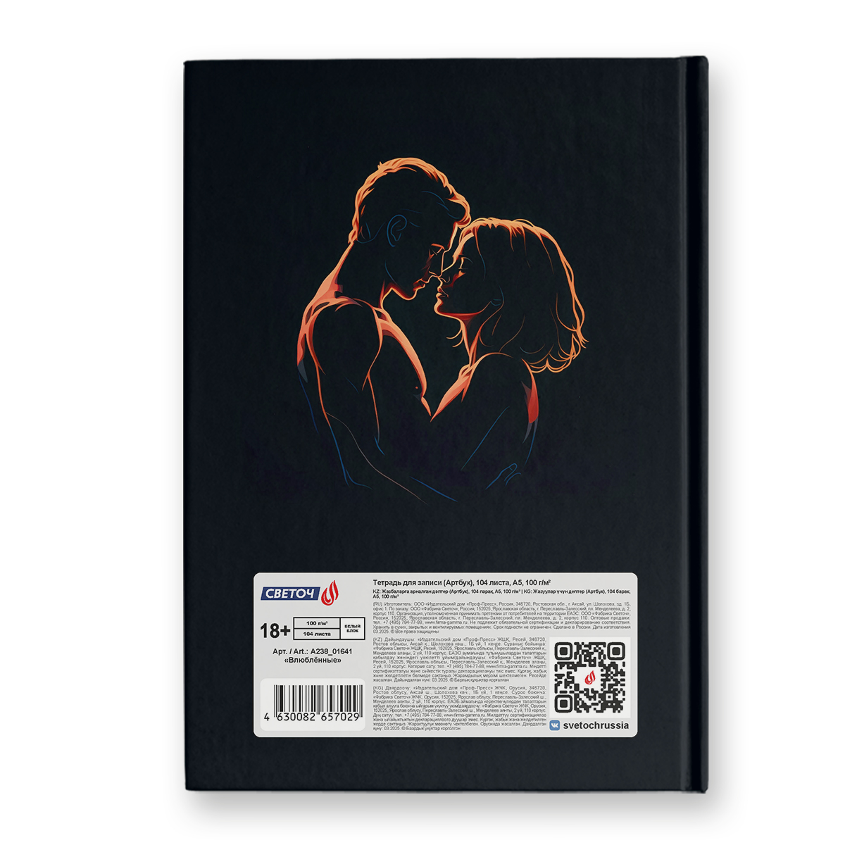 Артбук (скетчбук), глянцевая ламинация, блок белый, 7Бц, A5 100 г/м², сшивка 104 л. 4 шт, Влюблённые 01641, Светоч А238