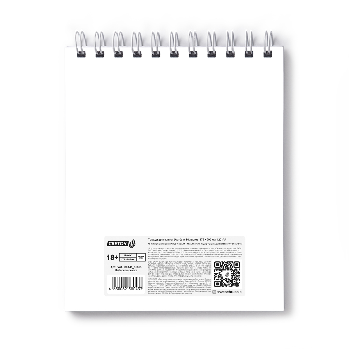 Внутренний блок изготовлен из качественной писчей бумаги плотностью 120 г/кв. м, 100% белизны.