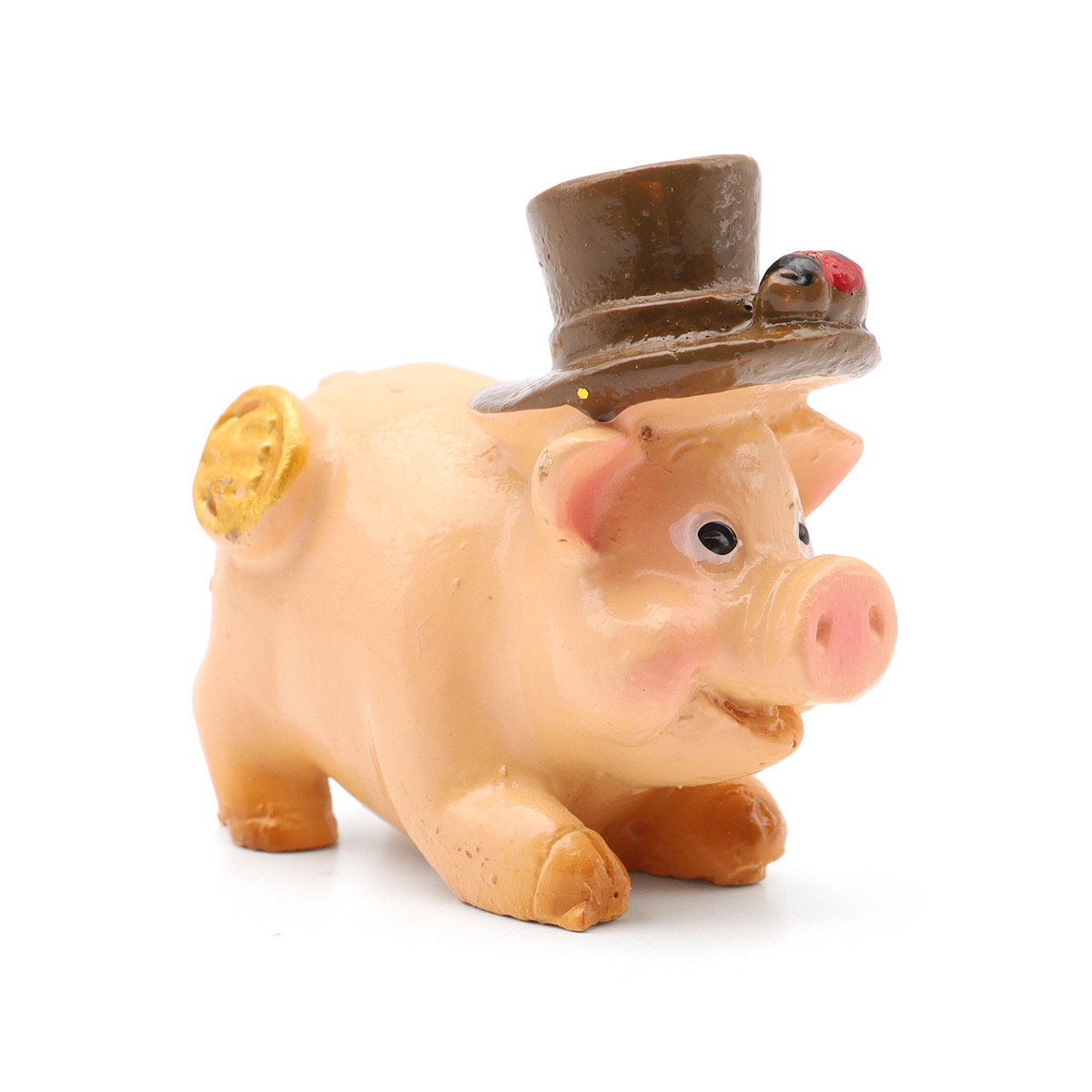 Миниатюра кукольная: Свинка в коричневой шляпе с монетой 3х1 см, AS15-02