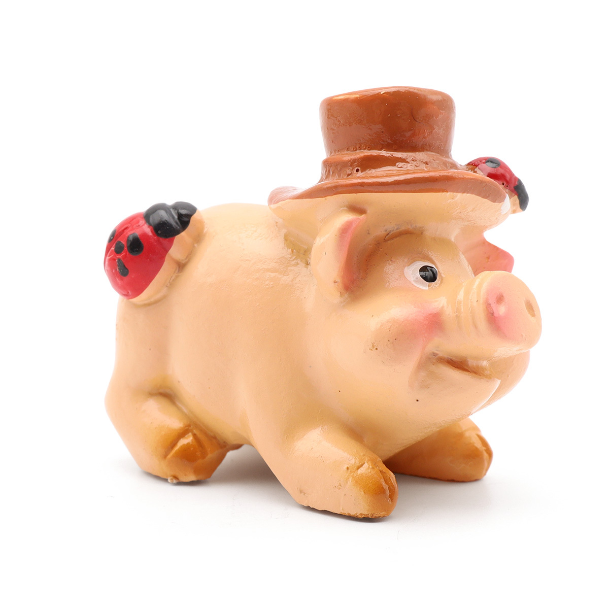 Миниатюра кукольная: Свинка в св.коричневой шляпе 3х1 см, AS15-02