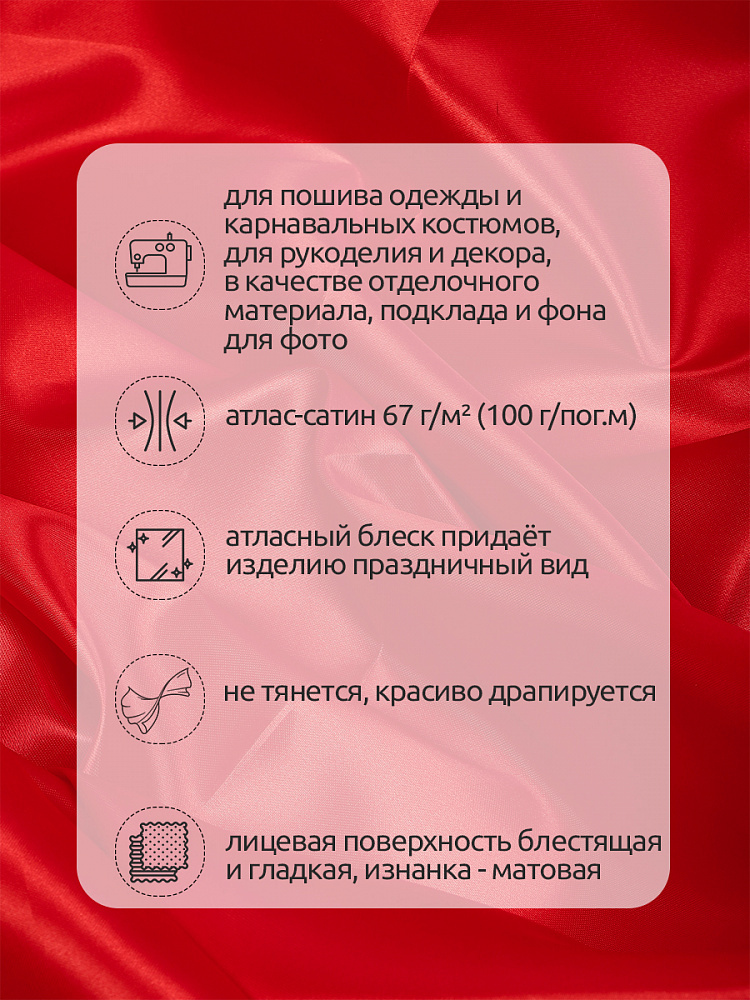 Атлас сатин 67 г/м², 150 см / 100 метров, арт.AS.04 цв.красный