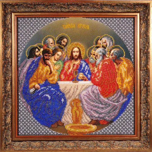 Бисер – традиционный материал для украшения икон. Его ценят за яркий блеск, многообразие цветовой палитры, долговечность. Икона 'Тайная Вечеря', расшитая бисером, займет почетное место в вашем домашнем иконостасе или станет прекрасным подарком верующему человеку. Работа выполнена по правилам церковной вышивки: бисером зашиваются отдельные участки, кроме лика, рук и надписей на иконе. Рекомендации: чтобы вышивка получилась аккуратной, используйте пяльцы. Ткань-основу не рекомендуется стирать, поэтому приступать к работе желательно с чистыми руками. Нитки для бисера и рамка не входят в комплект. В наборе: бисер Чехия, льняная ткань с нанесенным рисунком, бисерная игла, подробная инструкция. Количество цветов: 22.