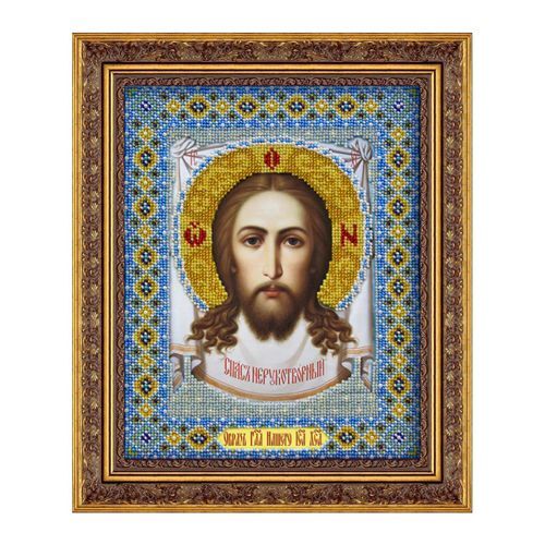 Бисер – традиционный материал для украшения икон. Его ценят за яркий блеск, многообразие цветовой палитры, долговечность. Икона 'Спас Нерукотворный', расшитая бисером, займет почетное место в вашем домашнем иконостасе или станет прекрасным подарком верующему человеку. Работа выполнена по правилам церковной вышивки: бисером зашиваются отдельные участки, кроме лика, рук и надписей на иконе. Рекомендации: чтобы вышивка получилась аккуратной, используйте пяльцы. Ткань-основу не рекомендуется стирать, поэтому приступать к работе желательно с чистыми руками. Нитки для бисера и рамка не входят в комплект. В наборе: бисер Чехия, льняная ткань с нанесенным рисунком, бисерная игла, подробная инструкция. Количество цветов: 10.
