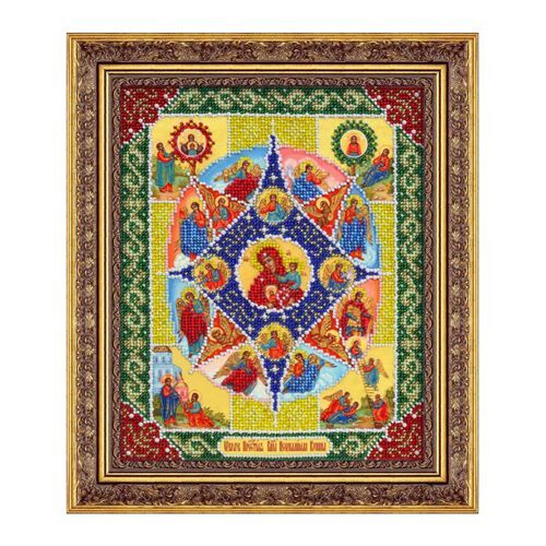 Бисер – традиционный материал для украшения икон. Его ценят за яркий блеск, многообразие цветовой палитры, долговечность. Икона Богородицы 'Неопалимая купина', расшитая бисером, займет почетное место в вашем домашнем иконостасе или станет прекрасным подарком верующему человеку. Работа выполнена по правилам церковной вышивки: бисером зашиваются отдельные участки, кроме лика, рук и надписей на иконе. Рекомендации: чтобы вышивка получилась аккуратной, используйте пяльцы. Ткань-основу не рекомендуется стирать, поэтому приступать к работе желательно с чистыми руками. Нитки для бисера и рамка не входят в комплект. В наборе: бисер Чехия, льняная ткань с нанесенным рисунком, бисерная игла, подробная инструкция. Количество цветов: 14.