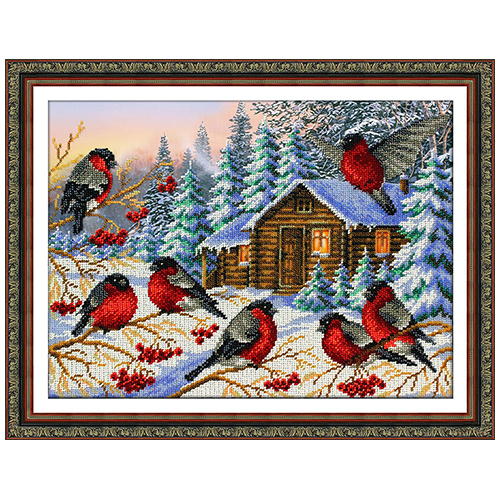 Набор для вышивания бисером Паутинка, Снегири 38х28 см Б1437