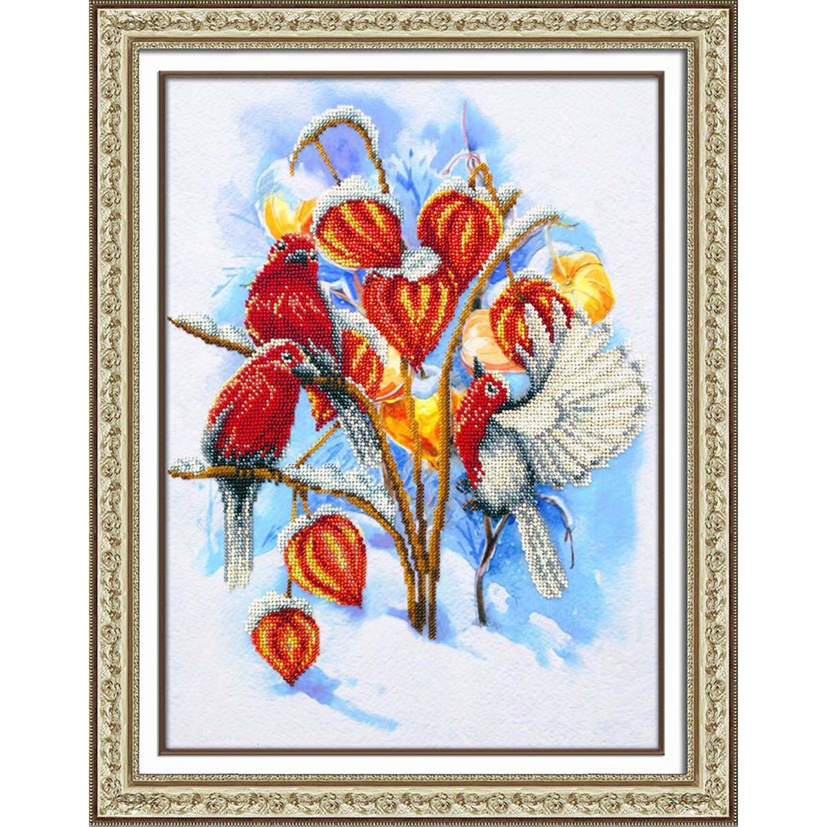 Набор для вышивания бисером Паутинка, Физалис в снегу 28х38см