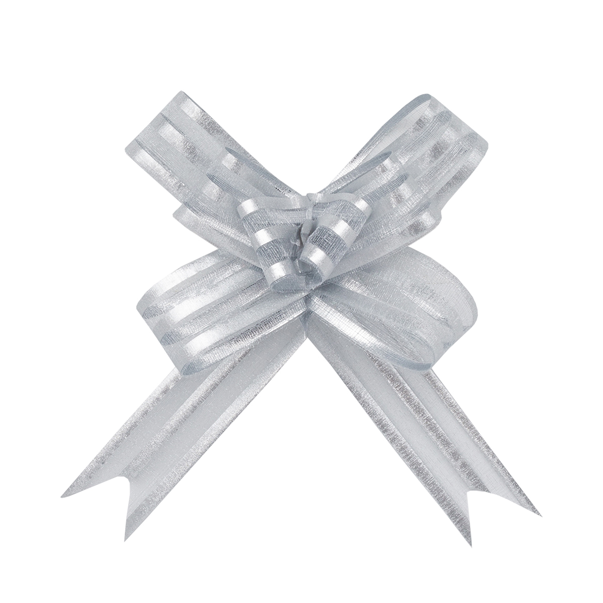 Бант-бабочка для упаковки подарка ⌀7 см, ширина ленты 1,7 см, 10 шт, 07 серебряный