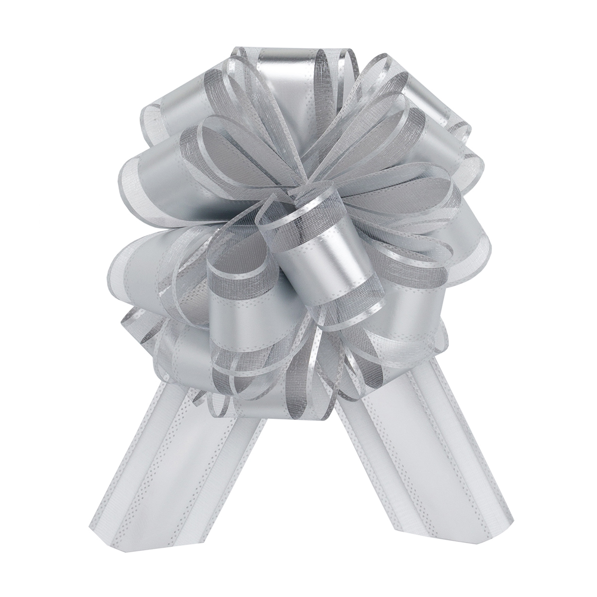 Бант-шар для упаковки подарка ⌀14 см, ширина ленты 5 см, 1 шт, 69 серебряный
