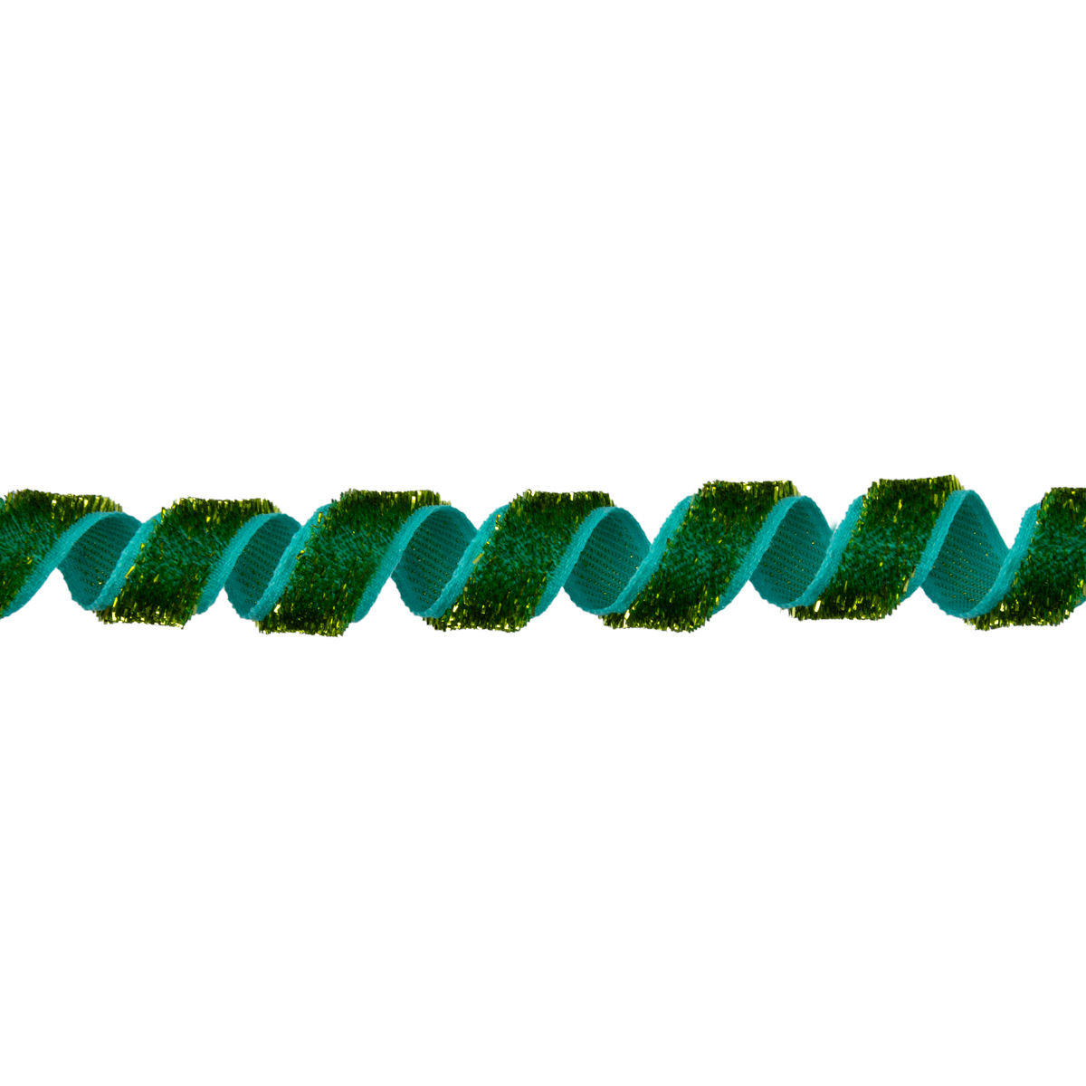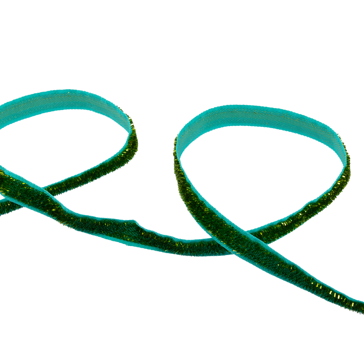 Лента бархатная (тесьма) 10.0±2 мм / 10±0.5 метров, с метанитом, рис 9252 салатовый/морская волна, Blitz С3722Г17