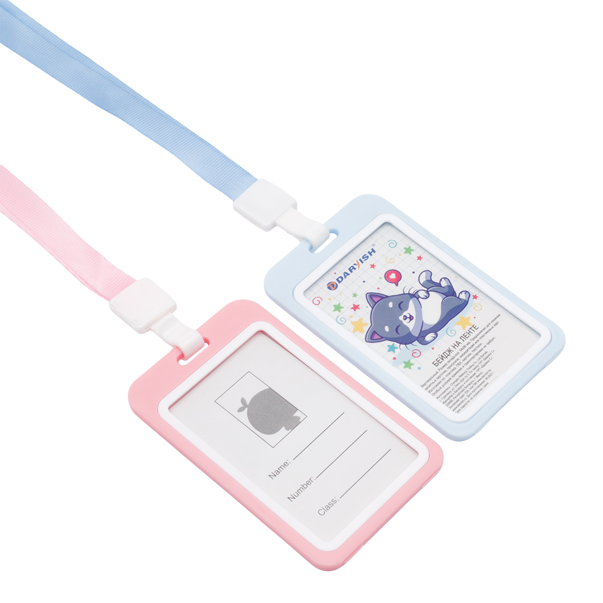 Бейдж на ленте вертикальный 54х86 мм, лента 42.5 см, 20 шт, голубой, розовый по 10 шт, Darvish, DV-13797
