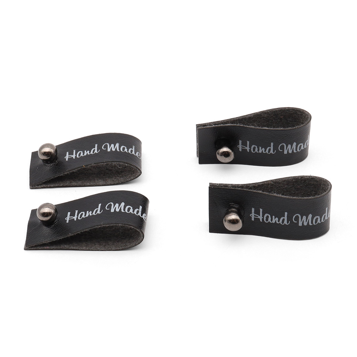 Бирка из экокожи Нand Made с кнопкой черная печать 1,5х7см, 4 шт (черная)