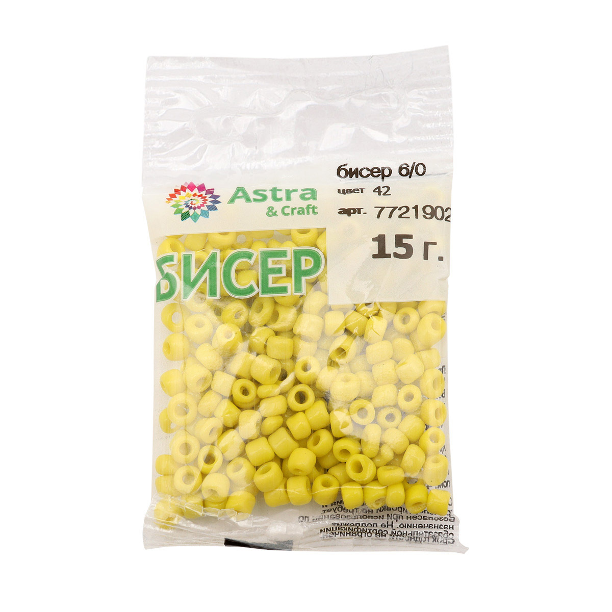 Бисер Astra&Craft 6/0 (4.1 мм), 150 г (10х15 г), цв. 42 желтый/непрозрачный