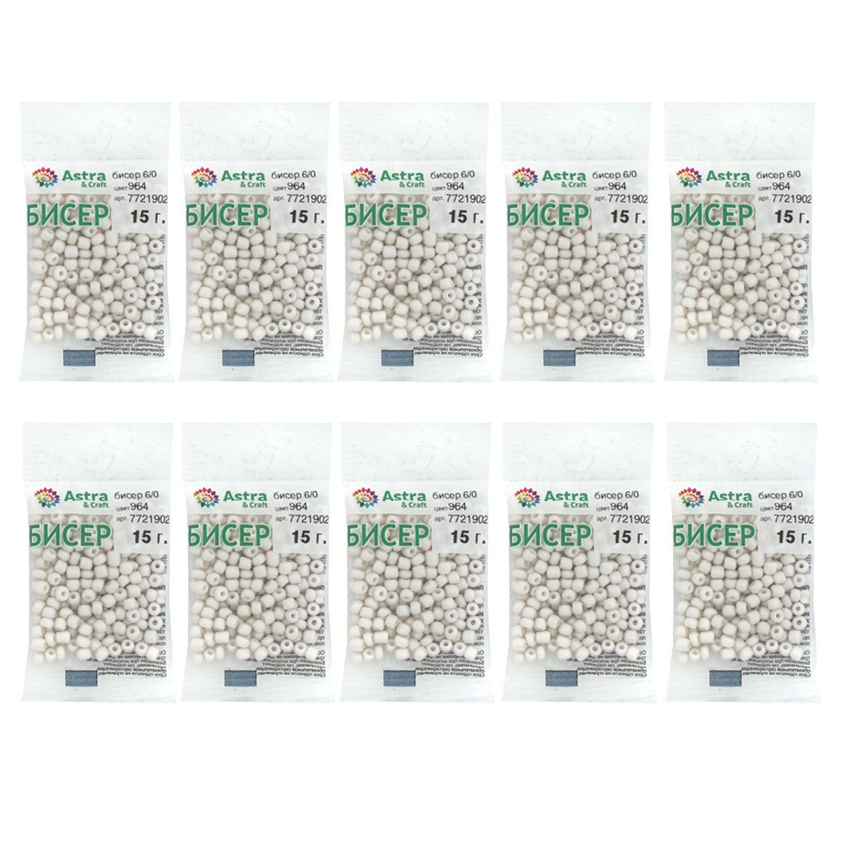Бисер Astra&Craft 6/0 (4.1 мм), 150 г (10х15 г), цв. 964 эффект жемчуга