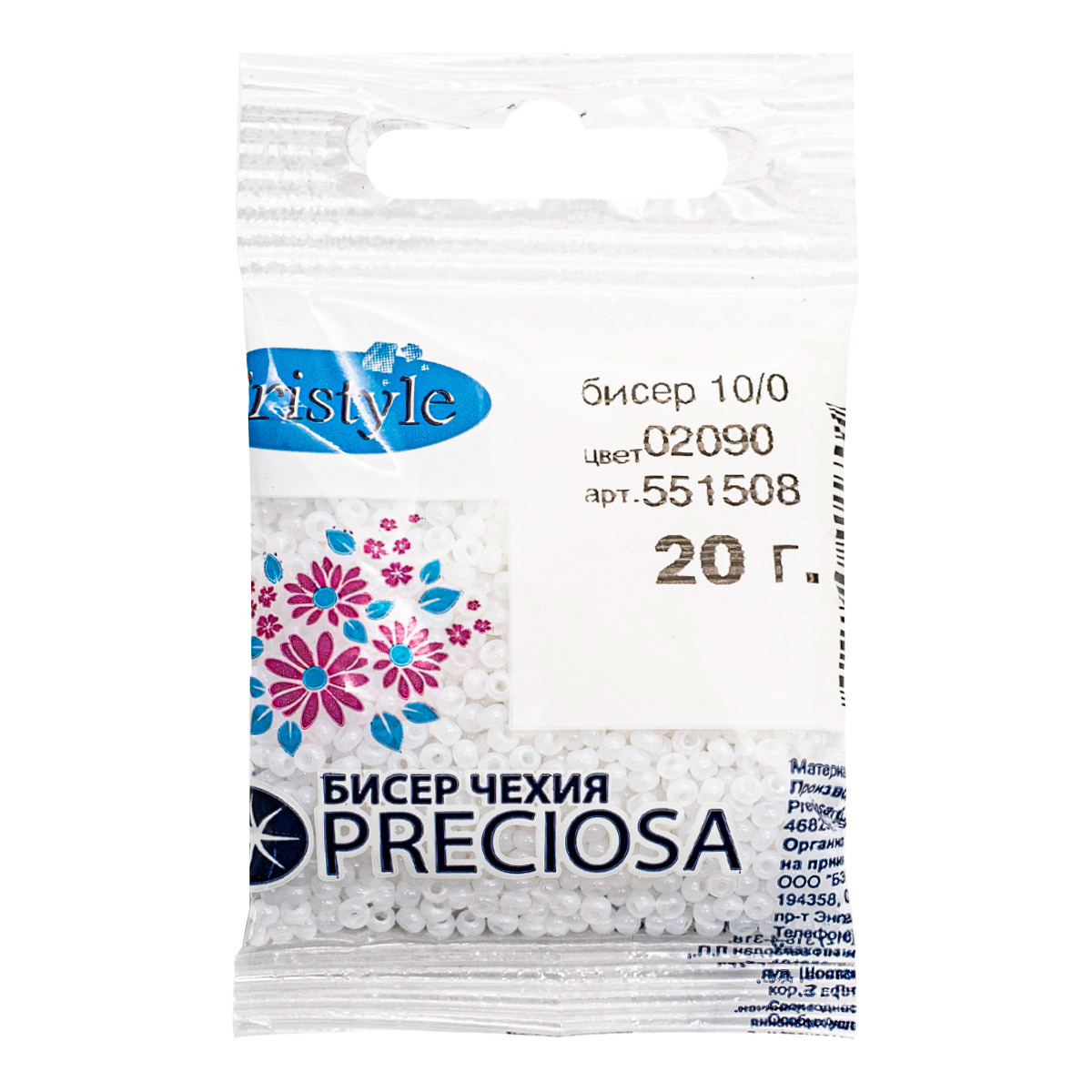 Бисер Preciosa 10/0 (2.3 мм), 100 г (5х20 г), белый полупрозрачный, круг.отв.