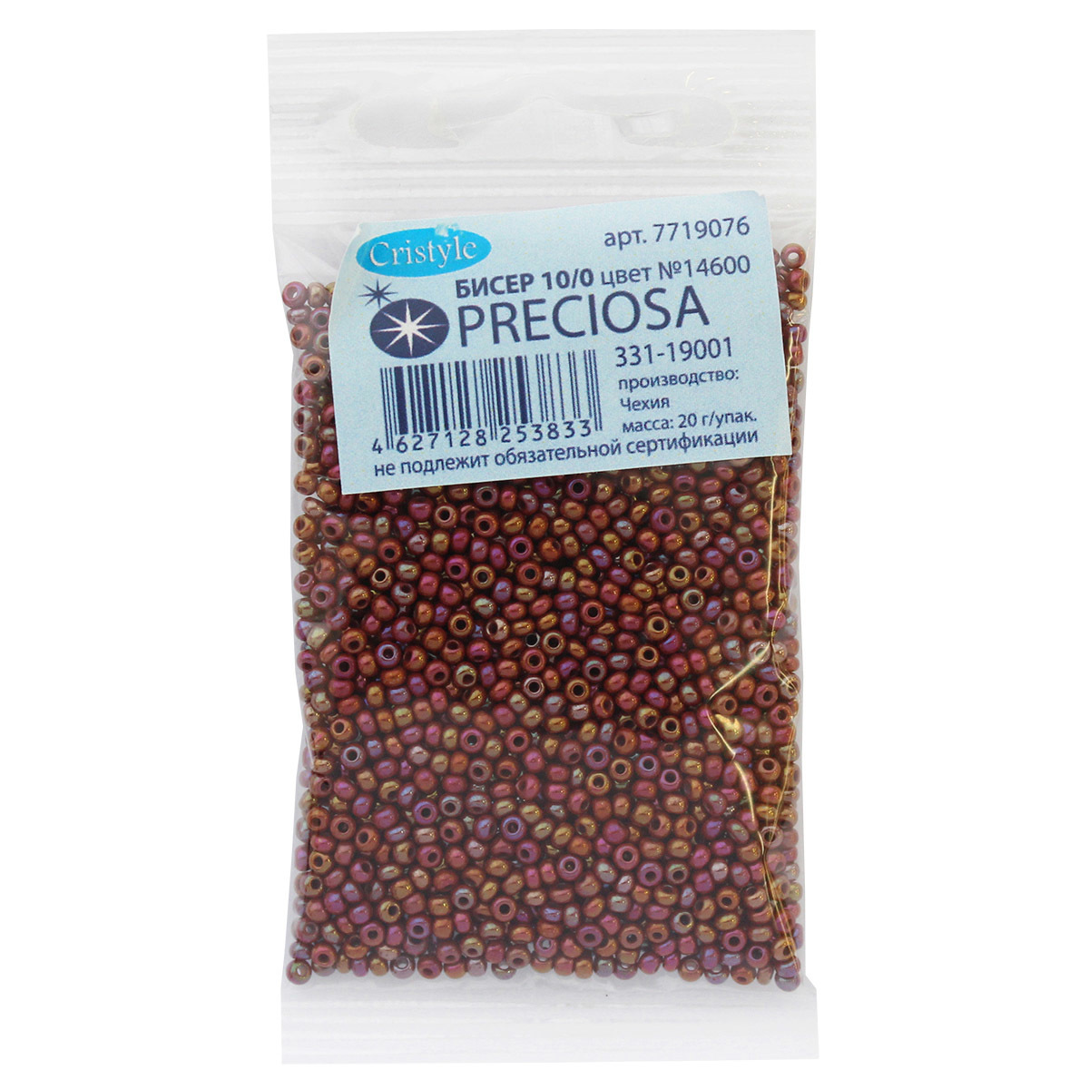 Бисер Preciosa непрозрачный радужный 10/0 (2.3 мм), круг.отв, 20гр, уп.5 шт