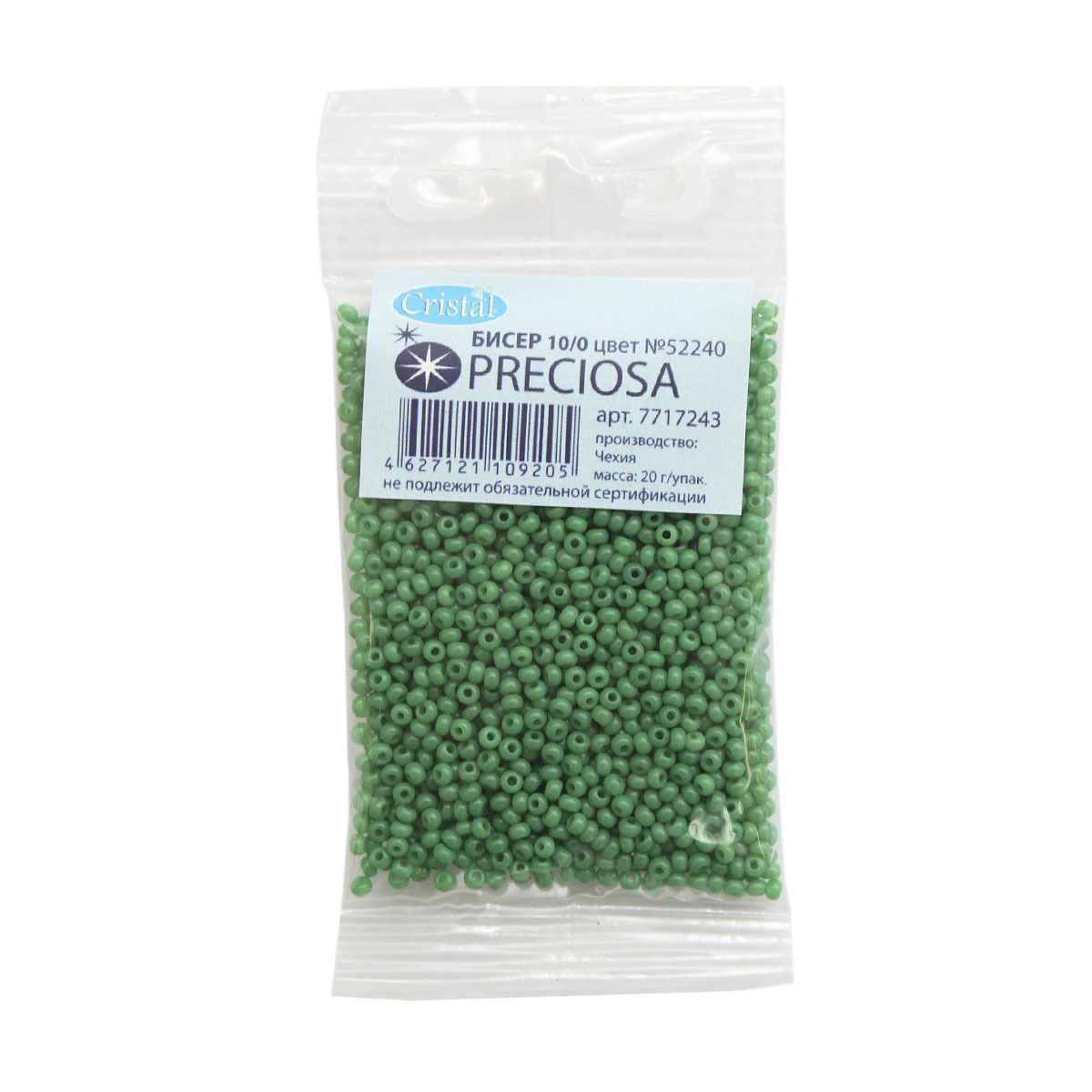 Бисер Preciosa полупрозрачный 10/0 (2.3 мм), круг.отв, 20гр, уп.5 шт