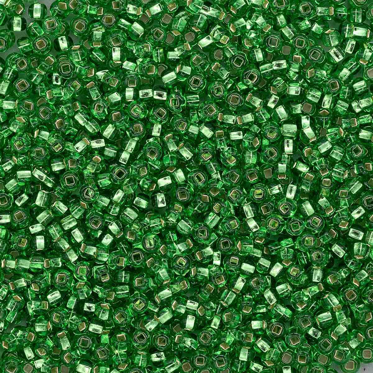 Аккуратно откалиброванный бисер из прозрачного чешского стекла. Классическая форма. Ярко сверкает благодаря посеребренному центру. Подходит для создания украшений, вышивки одежды, картин, предметов интерьера и др. Допускается стирка при температуре до 40гр.C, не портится от косметики или пота. Для сохранения серебристого блеска беречь от интенсивного трения нити и воздействия агрессивных моющих средств. Цвет: зеленый. Размер: 10/0 (2,3 мм). Объем: расфасован в пакетики по 20 г.