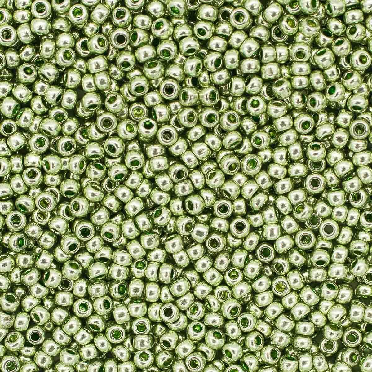 Аккуратно откалиброванный бисер сорта solgel из прозрачного чешского стекла с покрытием 'металлик'. Отличается большим выбором оттенков цвета. Классическая форма. Подходит для создания украшений, вышивки одежды, картин, предметов интерьера и др. Допускается стирка при температуре до 40гр.C. Для сохранения блеска не допускать длительного контакта с кожей, беречь от интенсивного трения и воздействия агрессивных моющих средств. Цвет: зеленый. Размер: 10/0 (2,3 мм). Объем: расфасован в пакетики по 20 г.