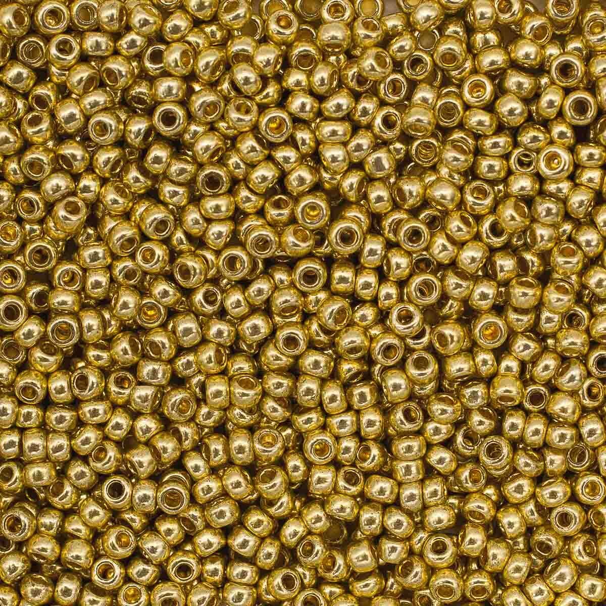Представляем вашему вниманию бисер Preciosa сорта solgel классической формы из прозрачного чешского стекла. Вот уже почти полтора столетия чешский бисер пользуется огромной популярностью у мастеров всего мира. Он ценится за высокое качество, идеальную калибровку, разнообразие расцветок, фактур и форм. Область применения бисера ограничена только фантазией мастера. Бисером расшивают одежду, головные уборы, обувь, предметы интерьера (шторы, скатерти.). Из бисера делают оригинальные авторские украшения, которые впечатляют своей изысканностью. Бисер используют во флористике: в руках опытного мастера этот материал превращается в роскошные цветы, способные украсить любой интерьер. Из бисера вышивают целые картины и панно. Для сохранения блеска, изделия из бисера необходимо беречь от интенсивного трения и воздействия агрессивных моющих средств, допускается стирка при температуре до 40гр.C. Форма бисера: круг. Размер: 10/0 (2,3 мм). Цвет: 18181 непрозрачный золотой металлик. Состав: стекло. Упаковка: 20 г. Страна производителя: Чехия.